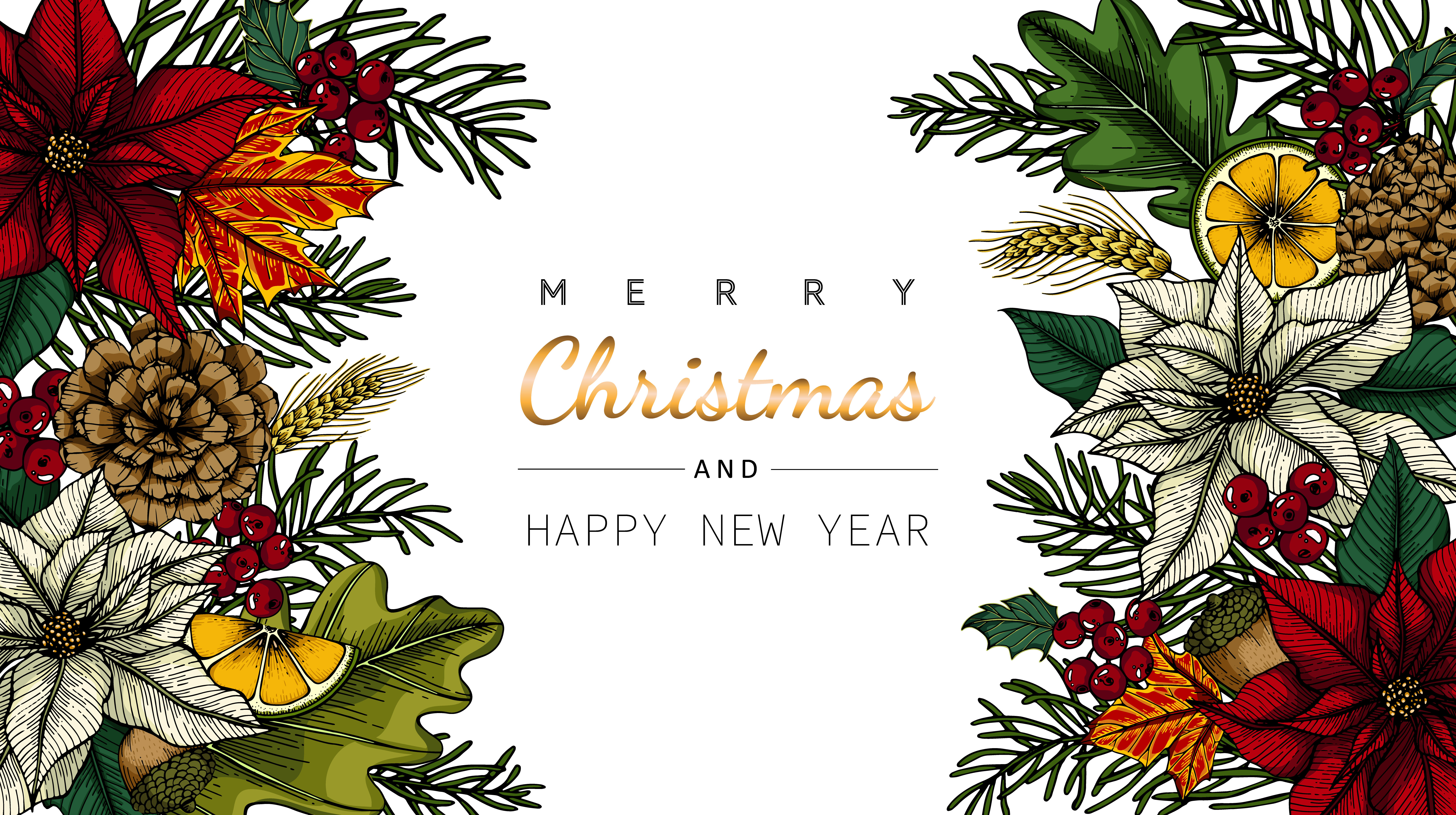 Merry Christmas And New Year Flower And Leaf Frame Drawing 689619 Vector Art At Vecteezy
